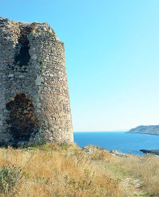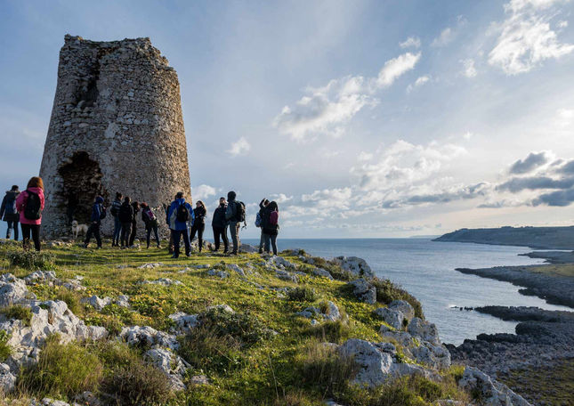 Torre Sant’Emiliano si erge isolata a margine di un alto e ripido sperone roccioso e continua a dominare, da secoli, la vallata e l’insenatura che unisce Porto Badisco con Punta Palascìa.